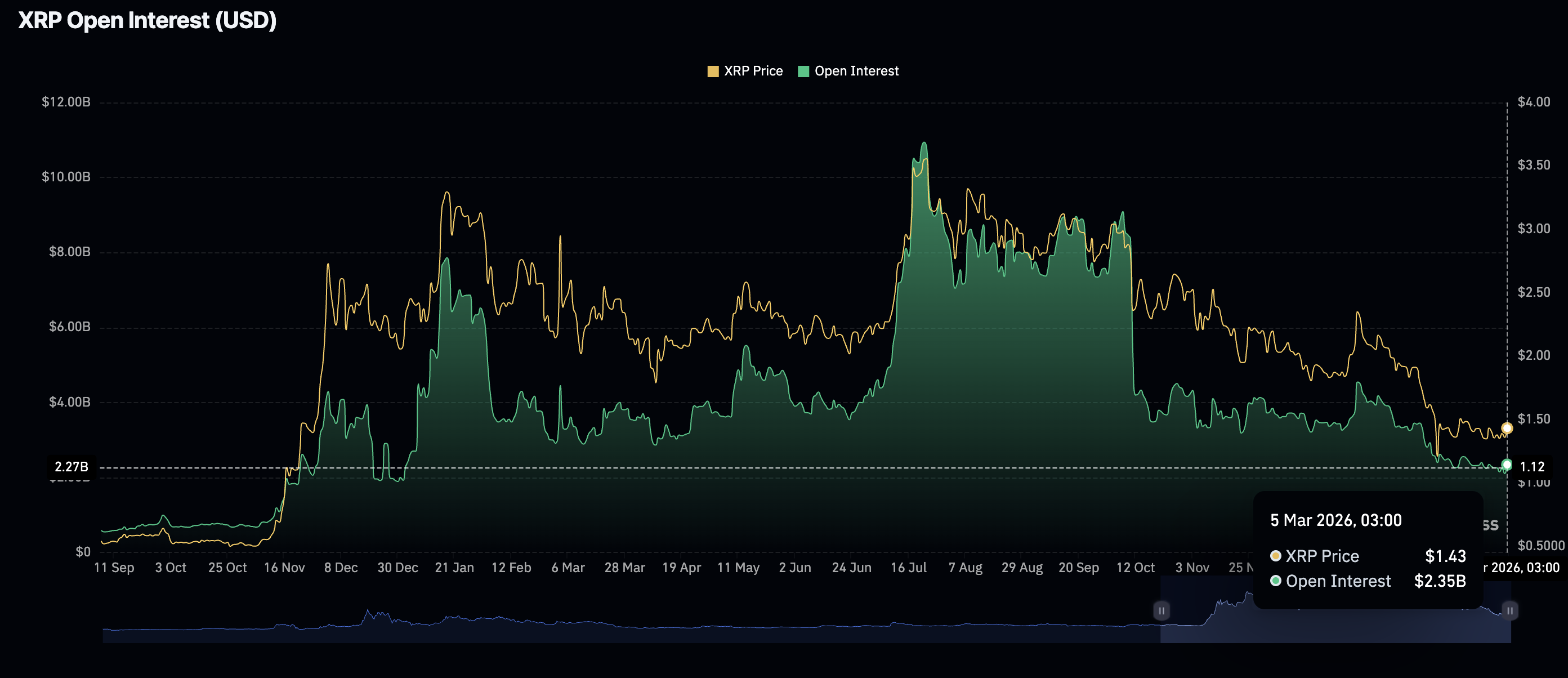 Retail investors have also shown signs of returning to the market, as reflected in futures Open Interest (OI), which has risen to $2.35 billion on Thursday from $2.11 billion the previous day. Although the OI holds significantly below the record $10.94 billion reached in July, the mild increase could help shape XRP’s short-term outlook if it holds.