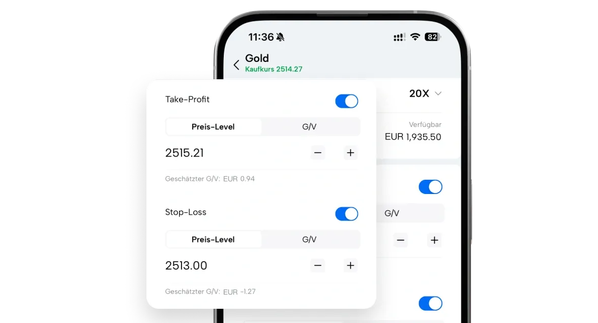 Verwalten Sie Positionen mit Stop-Loss- und Take-Profit-Aufträgen.