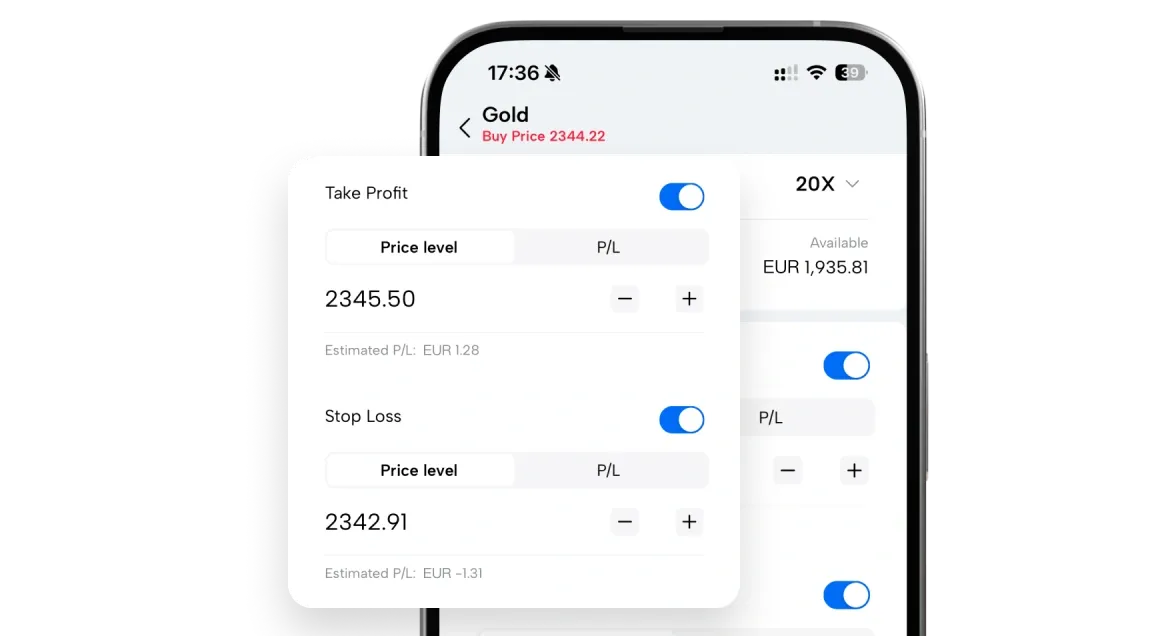 Manage positions with stop loss and take profit orders.